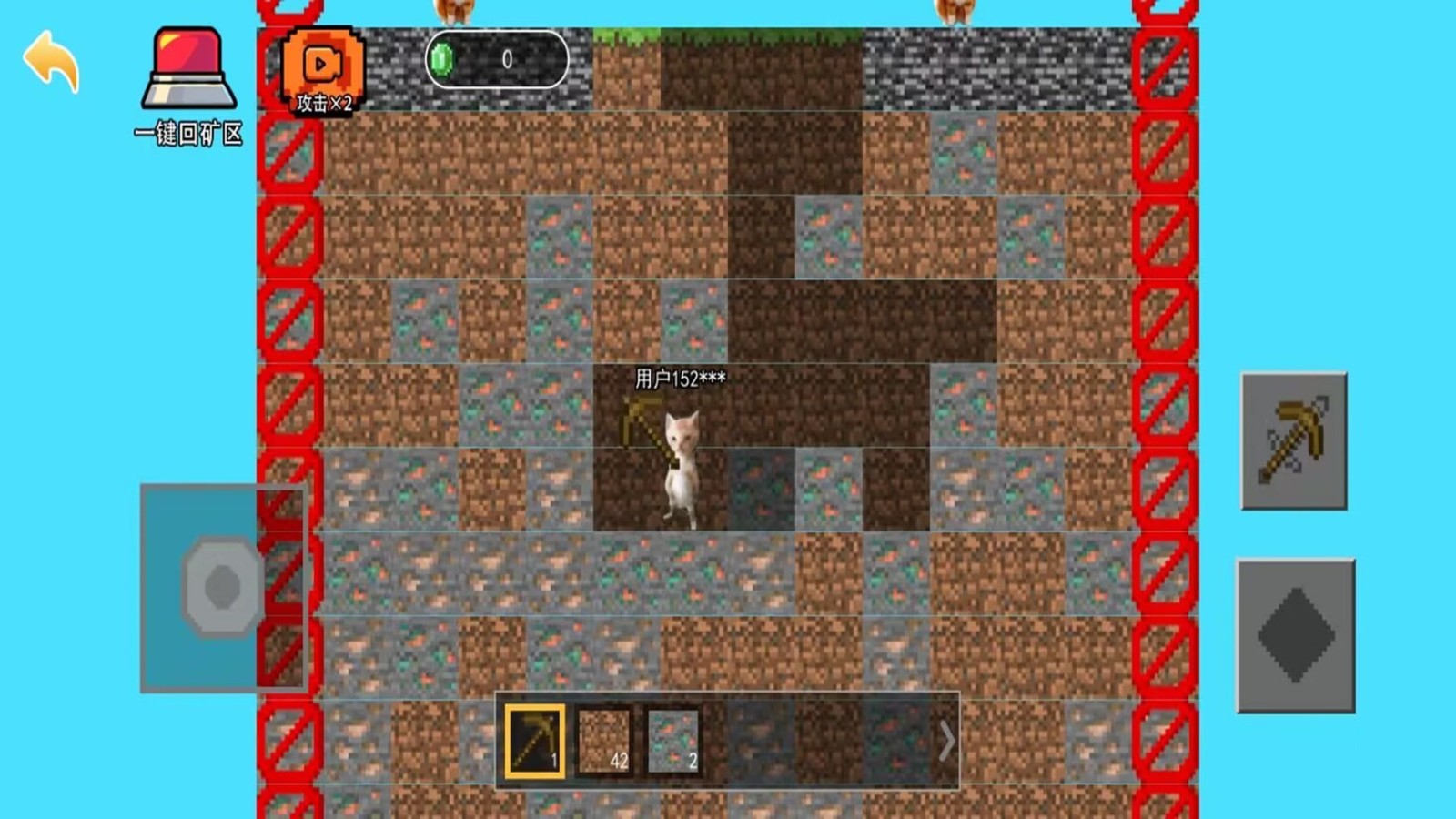 1、左侧按钮控制哈基米移动,右边上面的可以进行挖掘,下面是跳跃。