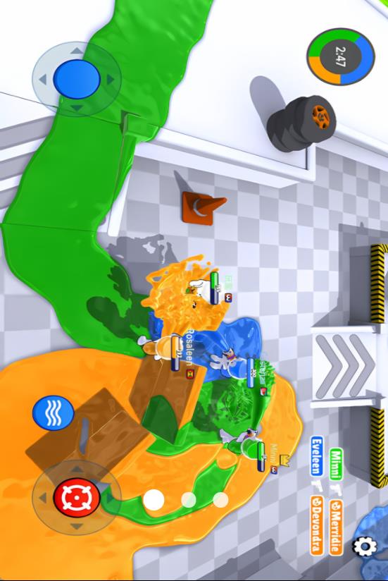 1、进入游戏后,你可以利用虚拟摇杆操控着战士移动,然后将敌人的炮塔也染成自己的颜色。