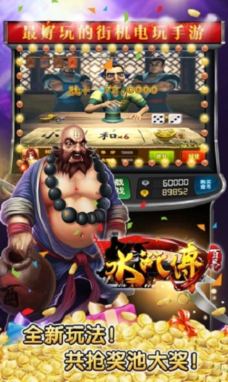 街机水浒传是一款经典的街机怀旧游戏,全新复古游戏玩法,在线超高的游戏奖金池。完美移植玩法,在现街机水浒传,超高的游戏福利,在线派发奖金赢取丰厚福利,手机上动动手指也能体验到游戏的乐趣,一起下载街机水浒传开始回味吧!
